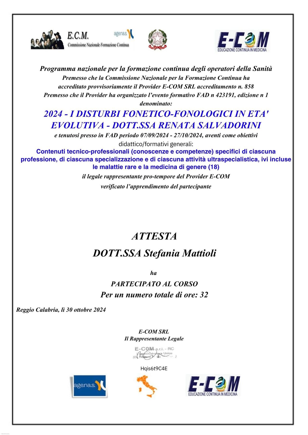 Mi chiamo Stefania Mattioli e sono una logopedista specializzata nell’età evolutiva.