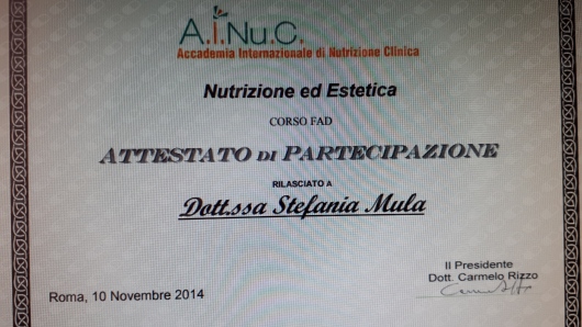 -Corso Nutrizione ed Estetica" presso Accademia Internazionale di Nutrizione Clinica (A.I.Nu.C.) Fad Roma