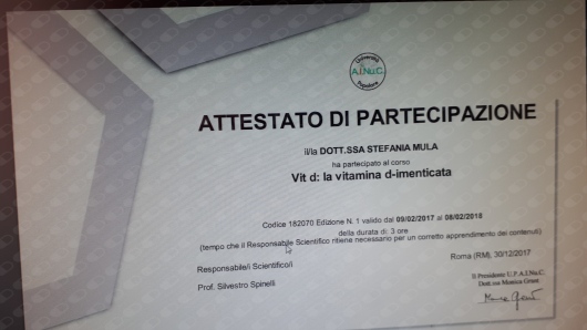 - Corso " La vitamina D-IMENTICATA" presso Università Popolare A.I.Nu.C. fad Roma