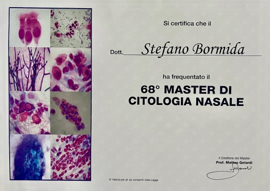 Ciao, sono il Dott. Stefano Bormida, otorinolaringoiatra a Torino. Mi sono laureato in Medicina e Chirurgia all’Università di Torino con lode e mi sono specializzato in Otorinolaringoiatria e Chirurgia Testa-Collo col massimo dei voti, approfondendo le mie competenze in Italia e all’estero, con corsi avanzati di chirurgia nasale, disturbi dell’equilibrio e patologie dell’orecchio. Ho anche un master di II livello in Citopatologia nasale.