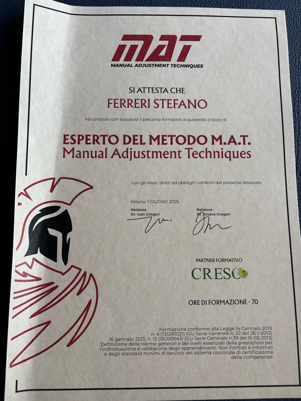 Stefano è un professionista serio e preparato. L'unico ad avere risolto i miei annosi problemi di cefalea legati a contratture di schiena e collo. Lo raccomando senza riserve