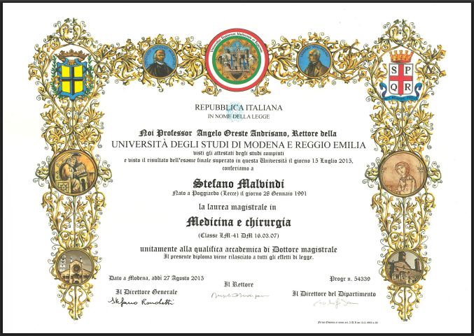Ho conseguito il diploma di maturità scientifica presso la Scuola Militare “Nunziatella” e la laurea magistrale in Medicina e Chirurgia con il massimo dei voti presso l’Università degli Studi di Modena e Reggio Emilia. Mi sono specializzato in Oftalmologia presso l’Università degli Studi di Napoli “Federico II” con Lode.