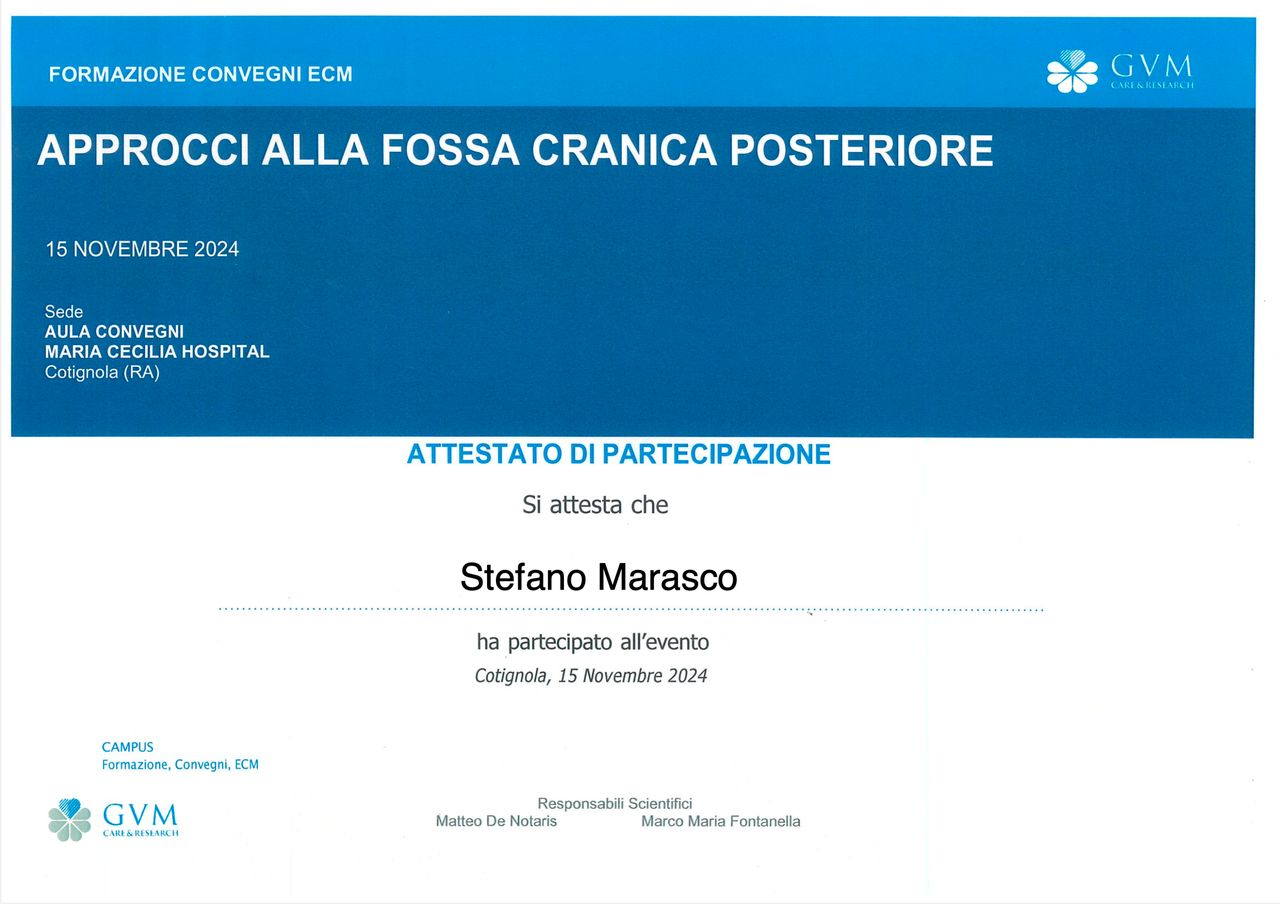Molto gentile e professionale il dr. Marasco ci ha fornito chiare e dettagliate spiegazioni su benefici e rischi dell'intervento di esportazione di un meningioma in prossimità del cervelletto, aiutandoci ad affrontare una scelta difficile.