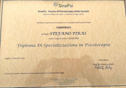 Dopo essermi laureato all'Università di Cagliari, ho conseguito l'abilitazione all'esercizio della professione, la specializzazione quadriennale in Psicoterapia della Gestalt, e l'abilitazione come terapeuta EMDR