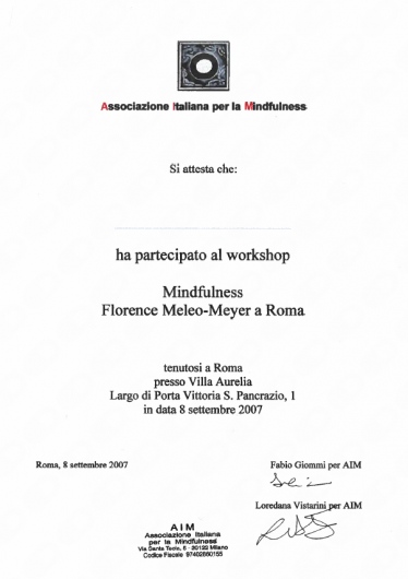 La pratica della mindfulness e la meditazione di consapevolezza sono stati, in oltre 25 anni, gli altri fili che ho intrecciato nella mia esperienza personale e professionale. Queste pratiche mi hanno donato la forza di stare con le difficoltà che la vita, talvolta, ci riserva. Per questo la mindfulness è più di una tecnica: è una vera e propria attitudine all'esistenza. Negli anni essa è divenuta così importante per me, da spingermi a creare un'associazione insieme ad alcune amiche e amici : il Centro Meditazione Roma - CMR (http://www.centromeditazioneroma.it), ormai attiva da oltre sei anni.