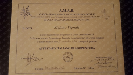 Fin da giovanissimo ho praticato arti marziali (Judo/Kung Fu) e meditazione, per cui essendo affascinato dalla cultura orientale dopo aver iniziato il percorso di studi di Agopuntura (2012) presso la Scuola A.M.A.B. nel 2014 ho, dapprima frequentato il master in Addomino-agopuntura con la Dottoressa Gemma D'Angelo, in seguito ho frequentato un master of clinical practice in Acupuncture presso l'Università di Nanjing (Cina).