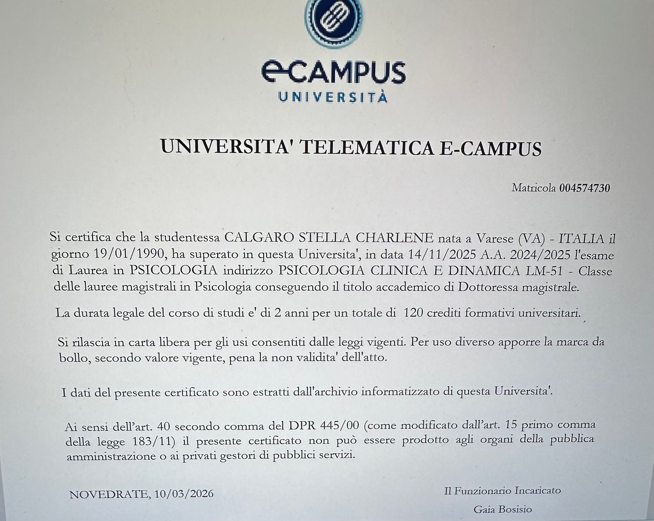Dott.ssa Stella Charlene Calgaro