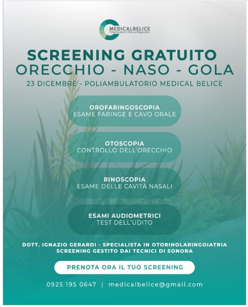 SCREENING GRATUITO ORECCHIO - NASO - GOLA con il Dott.re Ignazio Gerardi, specialista in Otorinolaringoiatria.