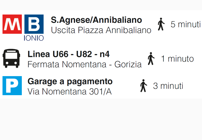 E' possibile parcheggiare presso il Garage, a pagamento, in Via Nomentana 301/A oppure nel Garage sotterraneo in Piazza Annibaliano (2 € tutto il giorno)