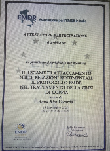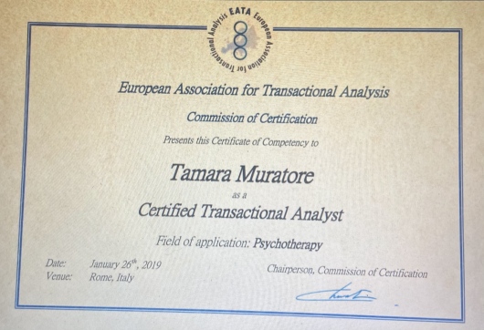 Ho conseguito la qualifica di Analista Transazionale Certificata (CTA) dall’EATA (Associazione Europea di Analisi Transazionale) e di terapeuta EMDR (Eye Movement Desensitization and Reprocessing, Desensibilizzazione e rielaborazione attraverso i movimenti oculari) una tecnica specifica per la risoluzione di traumi di varia entità. Ho frequentato la scuola Superiore di Specializzazione in Psicologia Clinica IFREP di Cagliari e sono iscritta all’albo degli psicologi della Sardegna al n. 2683.