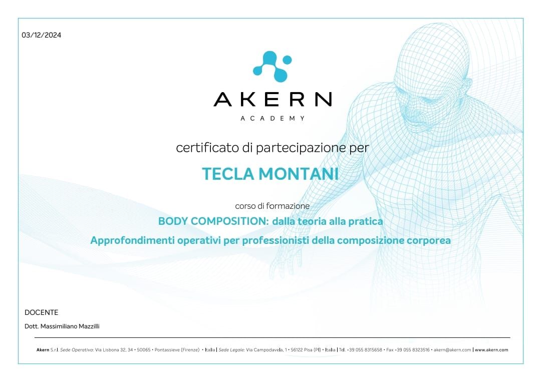 Ho avuto il privilegio di entrare a far parte dell’area di Nutrizione del settore giovanile dell’AC Milan, dove è cominciata la mia formazione. In seguito, tre giorni di formazione presso il Viola park di Firenze, centro di allenamento della squadra calcistica Fiorentina, mi hanno permesso di ottenere la certificazione ISAK, diventando un’antropometrista accreditata.