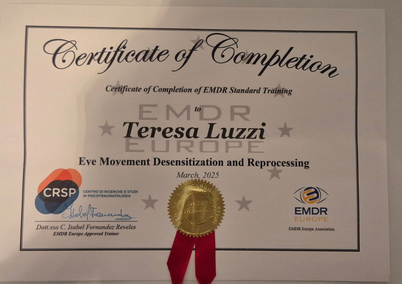 TERAPISTA EMDR --> negli ultimi anni sono diventata terapeuta EMDR di II livello. Cos'è EMDR? E' un approccio terapeutico che viene utilizzato per il trattamento del trauma e di problematiche legate allo stress, soprattutto allo stress traumatico. Dopo una o più sedute di EMDR, i ricordi disturbanti legati all'evento traumatico hanno una desensibilizzazione, perdono la loro carica emotiva negativa. Si è visto che, dopo poche sedute, il paziente riferisce un cambiamento molto rapido, facendo regredire i pensieri intrusivi relativi al trauma e migliorando sensibilmente il vissuto emotivo.