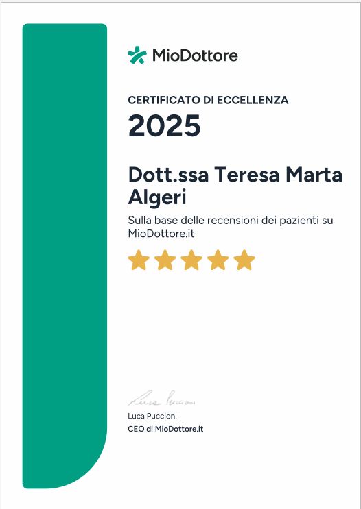 La Dott.ssa Algeri Teresa Marta è una specialista in ginecologia e ostetricia con un'ampia esperienza clinica e una lunga carriera dedicata alla salute della donna. Laureata in Medicina e Chirurgia presso l’Università degli Studi di Modena nel 1978 e specializzata in ginecologia e ostetricia all’Università di Parma nel 1984, ha lavorato per oltre vent’anni presso l’Arcispedale Santa Maria Nuova di Reggio Emilia, maturando un’ampia esperienza assistenziale.