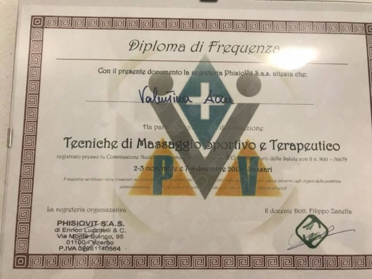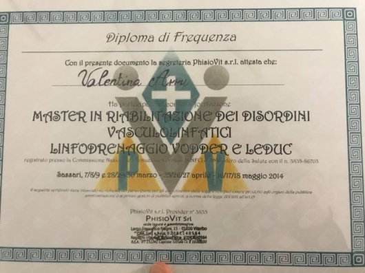 Specializzata in terapia manuale ortopedica , riabilitazione vascolare e linfatica, terapia mio fasciale, chiropratica, e riabilitazione del pavimento pelvico mi permette di poter spaziare tra un numero sempre aggiornato di tecniche e approcci riabilitativi sempre all'avanguardia e che garantiscono il trattamento personalizzato del paziente e sul paziente.