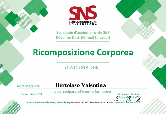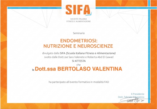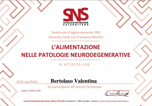 Durante i miei studi ho sempre approfondito vari ambiti di mio interesse in campo di nutrizione mediante dei corsi che continuo tutt'ora a frequentare.