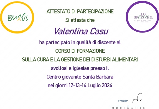 Sono inoltre Psicoterapeuta in formazione, iscritta presso la scuola di specializzazione in Psicoterapia della Gestalt: questo mi da modo di acquisire sempre nuovi strumenti psicologici e tecniche, come ad esempio tecniche espressive e creative, che spesso propongo ai miei pazienti, così da personalizzare l'intervento adattandolo al meglio per ognuno.