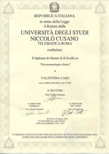 Dott.ssa Valentina Casu - Psicologa, Sessuologa, Psicoterapeuta in formazione.