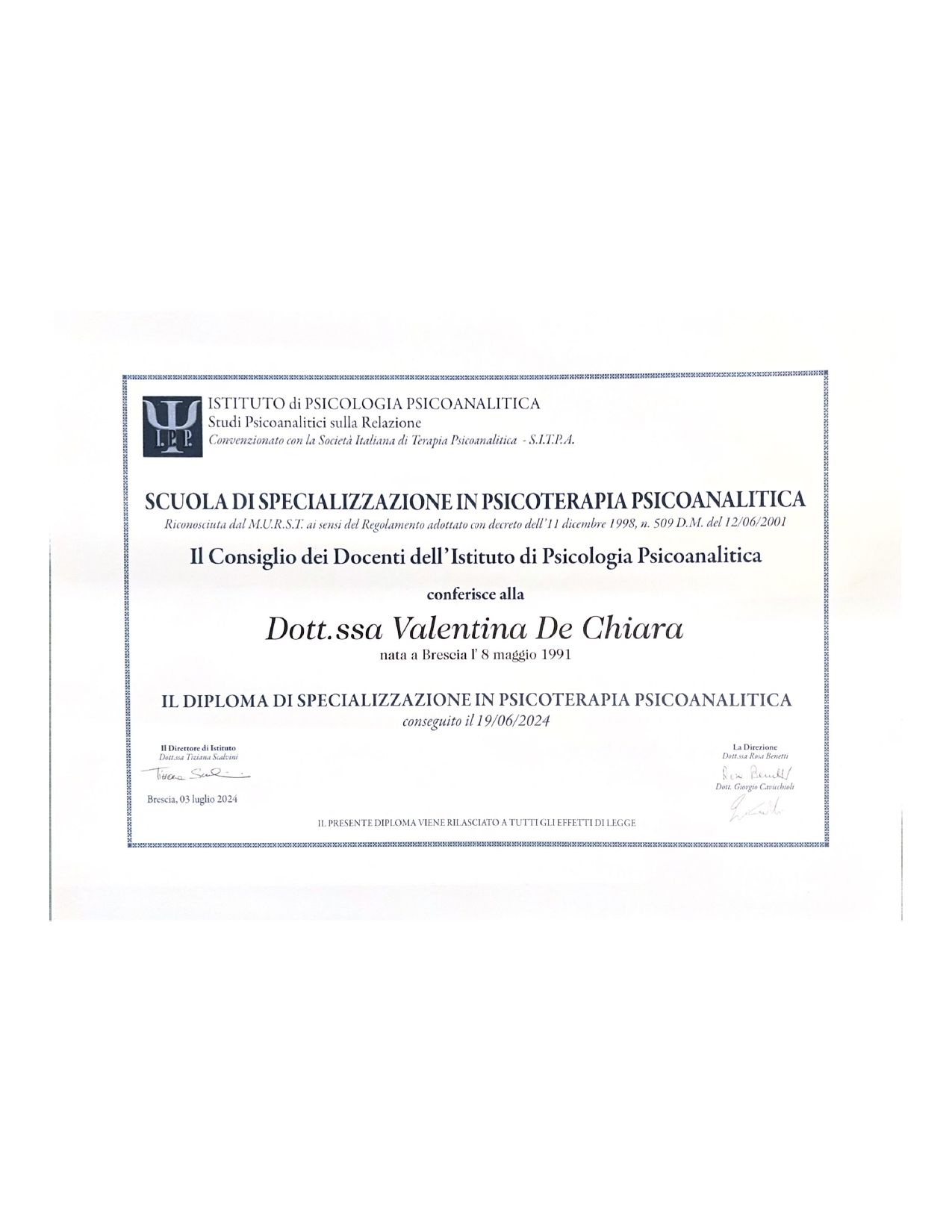 Sono la Dott.ssa Valentina De Chiara, psicologa clinica e psicoterapeuta a orientamento psicoanalitico.