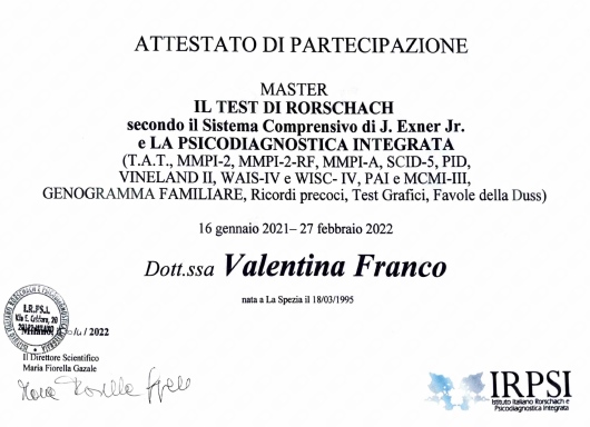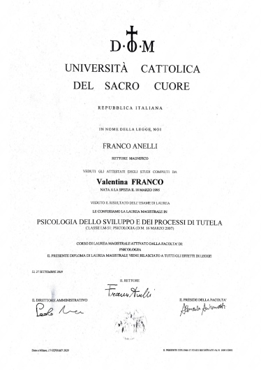 Rimango a sua disposizione, Dott.ssa Valentina Franco.