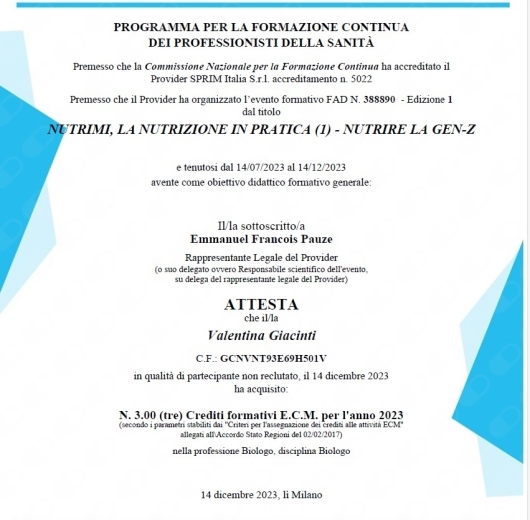 - Scienze dell'alimentazione umana