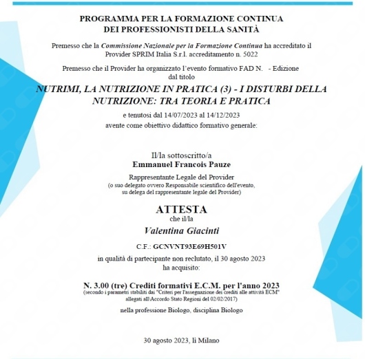 • Studio privato Valentina Giacinti • prima visita nutrizionale •