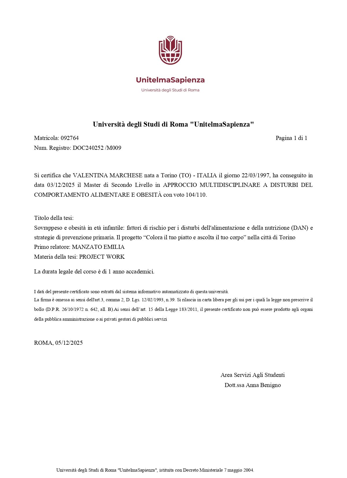 Dott.ssa Valentina Marchese