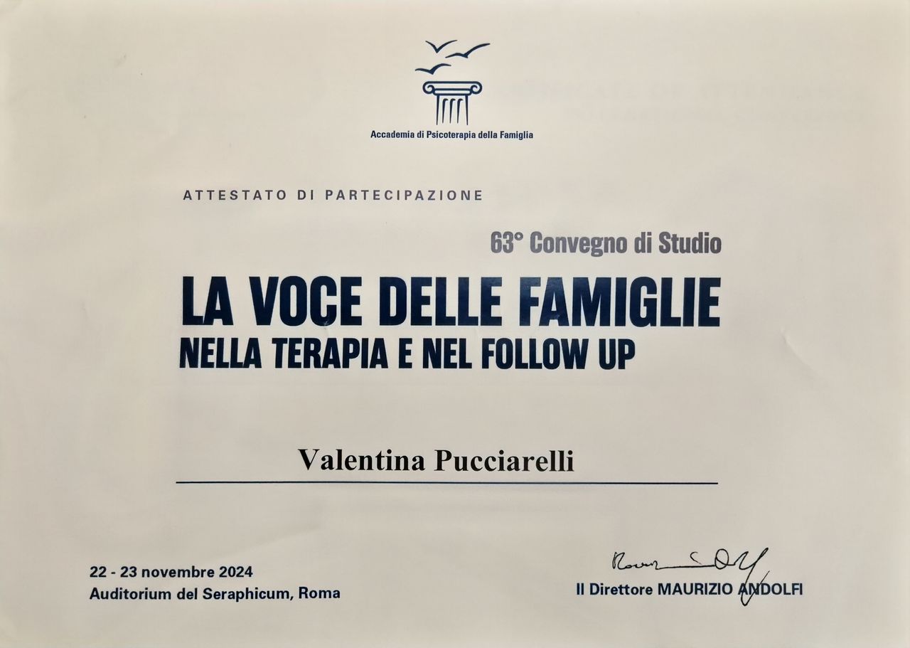 Sono la Dott.ssa Valentina Pucciarelli, psicologa iscritta all’Ordine degli Psicologi della Regione Lazio n.28520 e specializzanda in psicoterapia sistemico-relazionale al quarto e ultimo anno, presso l’Accademia di Psicoterapia della Famiglia di Roma. La psicologia per me non è soltanto una professione, ma una vera passione: da sempre ho avuto il desiderio di comprendere a fondo il comportamento umano e, per questo, continuo ad aggiornarmi e a perfezionare gli strumenti con cui accompagno le persone nel loro percorso. A guidare il mio lavoro è la convinzione che il primo passo verso il benessere sia la creazione di un contesto sicuro e accogliente: uno spazio dove sia possibile esplorare difficoltà, risorse e potenzialità e co-costruire un progetto terapeutico che risponda ai bisogni specifici della persona, accompagnandola a riconoscere e valorizzare le proprie risorse, affrontando criticità e promuovendo il cambiamento.