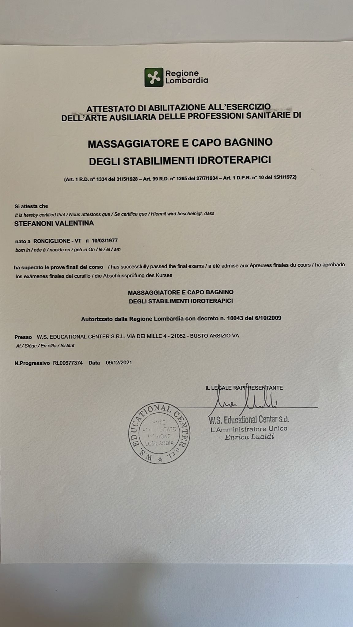 Ho molta esperienza avendo avuto molti trattamenti in varie parti del mondo. Valentina e' molto competente ed attenta ai singoli problemi e non trascura nulla!