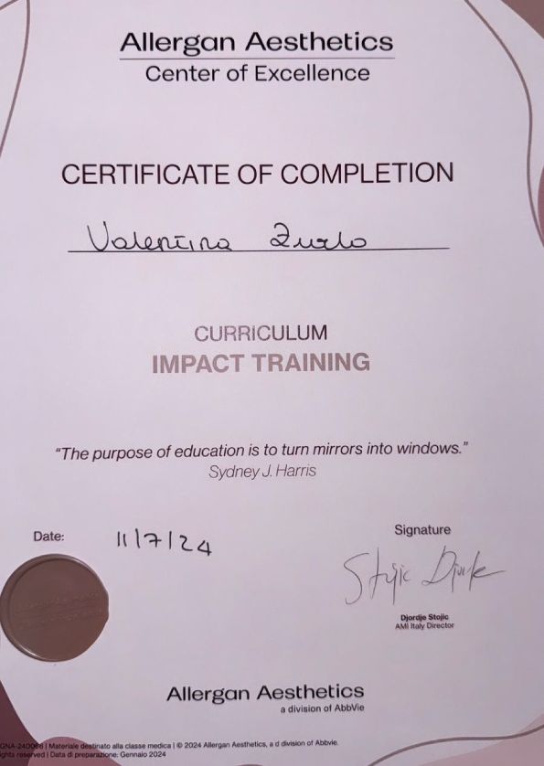 Ho effettuato oggi botox terzo inferiore e biorivitalizzante fillmed Nctf 135 Ha, la dottssa Valentina è molto attenta, senza l'ansia della fretta, si prende cura davvero della paziente.Brava!