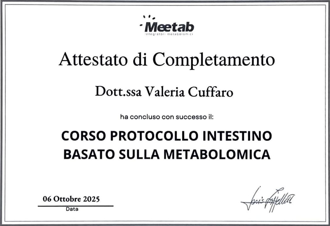 Mi Chiamo Valeria Cuffaro e sono una Biologa Nutrizionista. Nella mia pratica clinica sostengo il concetto della stretta correlazione tra Nutrizione e Benessere, la quale ha ormai solide basi scientifiche perfettamente documentate e comunicabili. Il rapporto tra alimentazione, salute e benessere fa parte dell’esperienza concreta di ogni persona coinvolgendo tutti gli aspetti della vita quotidiana, partendo dal piacere di mangiare e bere bene, magari in compagnia, fino a poter favorire la comparsa di malattie anche importanti, oppure conservare una buona salute e gestire positivamente sintomatologie dovute a malattie già in corso. Anche l’equilibrio ormonale, il tono dell’umore, l’attenzione, la performance sportiva e moltissimi altri aspetti della vita sono correlati con gli effetti, non solo immediati ma anche a lungo termine, di ciò che si mangia. Il cibo è quindi soprattutto un amico, benchè nella mia esperienza , abbia spesso incontrato persone che parlano del cibo quasi in modo negativo, presentandolo invece come un possibile nemico. Il mio sforzo con i miei pazienti è quello fornire loro una guida in modo altamente personalizzato e “sartorializzato”, sulle scelte alimentari quotidiane al fine di ristabilire un equilibrio tutto loro con il cibo e raggiungere il loro personale obiettivo, che poi diventa automaticamente anche il mio.