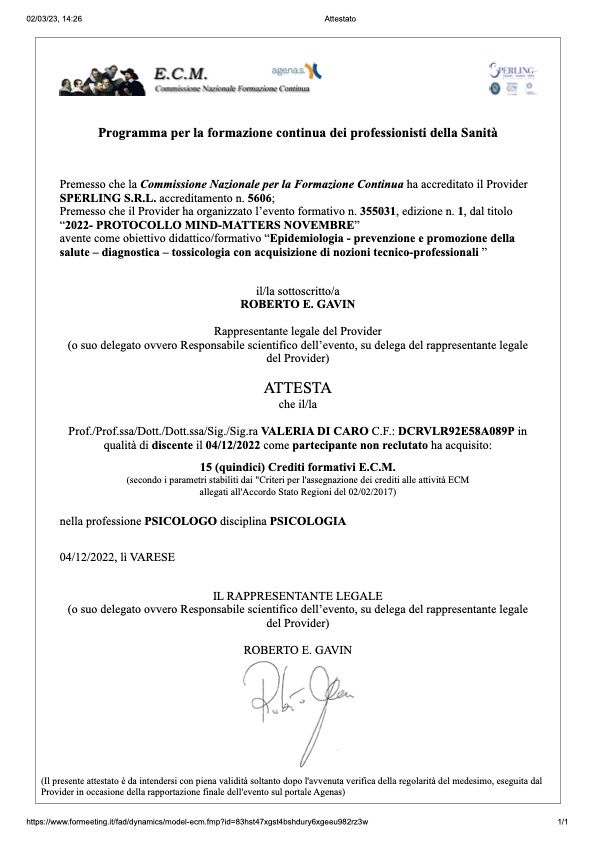 Mi sento davvero grata di aver incontrato la dottoressa di Caro, una professionista attenta, empatica e competente. Fin dal primo incontro mi sono sentita ascoltata senza giudizio, accolta nei miei tempi e nei miei silenzi. Il suo modo di lavorare è delicato ma profondo, mi sta aiutando a vedere con più chiarezza dentro di me e a ritrovare fiducia e serenità.