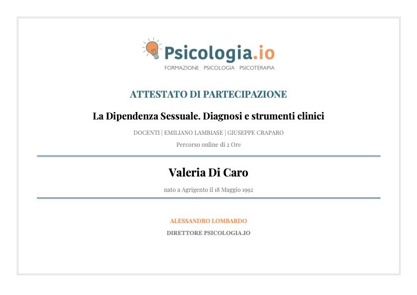 La dott.ssa Di Caro mi ha offerto uno spazio sicuro dove poter capire e ricostruire, aiutandomi a dare un senso a tante cose che prima sembravano solo caos. Con il tempo ho iniziato a conoscermi e affrontare situazioni che tendevo ad evitare. La consiglio senza esitazioni.