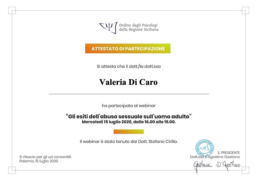 Consiglio la Dott.ssa Di Caro per la sua empatia, preparazione e per la disponibilità, poche volte ho incontrato un professionista capace di infondere in così poco tempo un senso di sicurezza tale, confido molto nelle sue capacità.