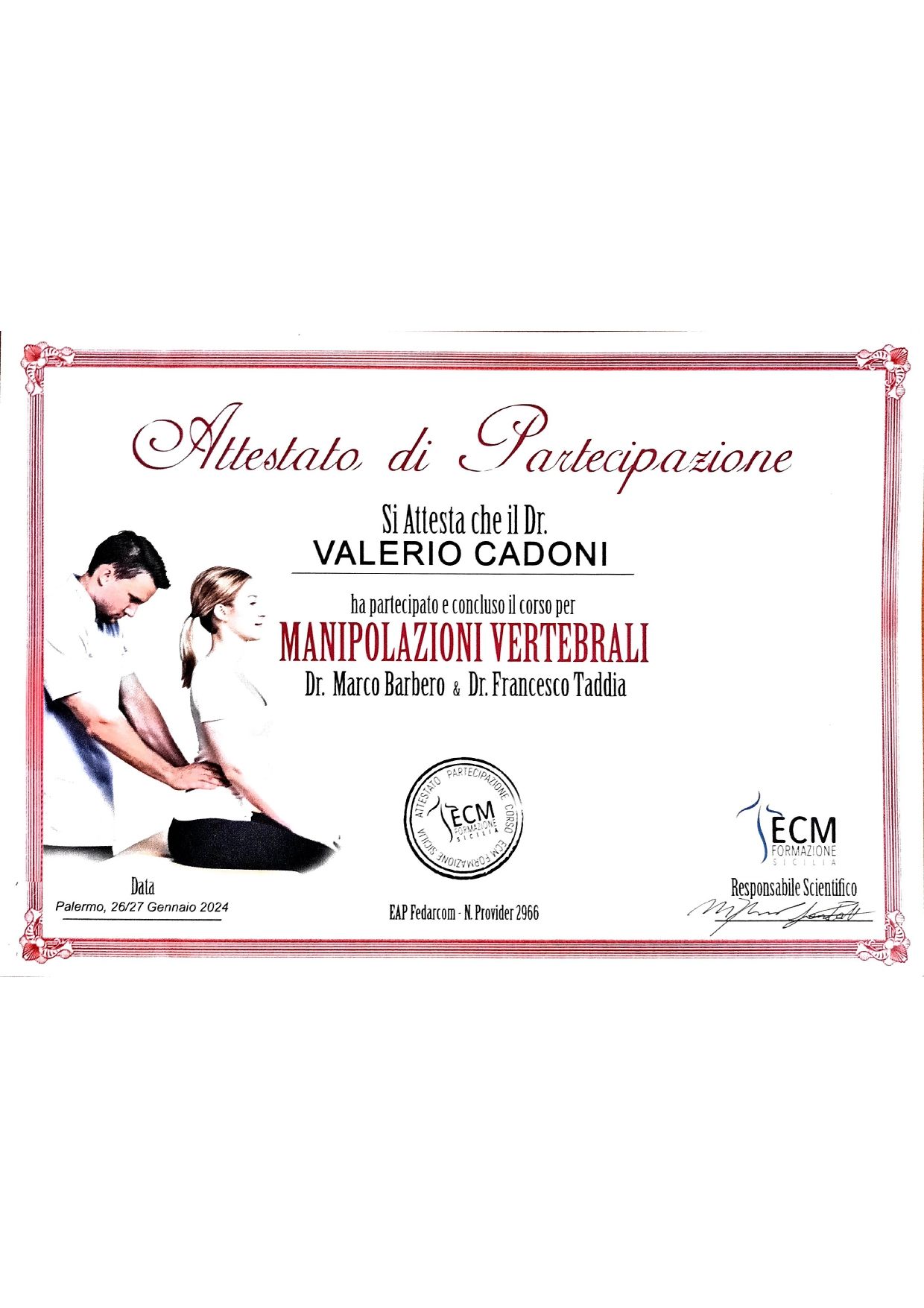 Valerio ha grandissime capacità , è stato in grado di farmi guarire in poco tempo un problema che ne richiedeva tanto , attenzionando tutto con massima cura, precisione e professionalità, aiutandomi e motivandomi nella riuscita. È una mente fantastica e ha tutta l’esperienza necessaria per qualsiasi tipo di evenienza , questo fa sì che se dovessi dare una consiglio sicuramente la scelta sarà lui.