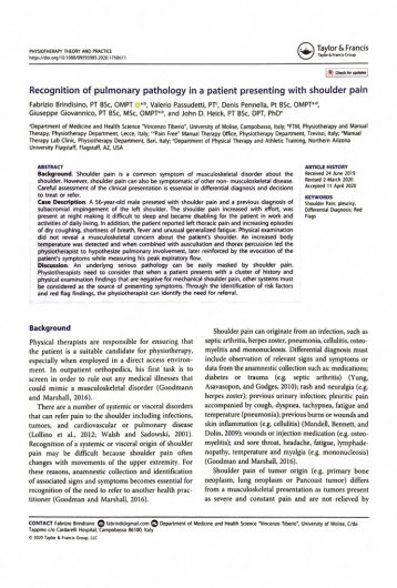Recognition of pulmonary pathology in a patient presenting with shoulder pain (Physiotherapy Theory And Practice, 2020)