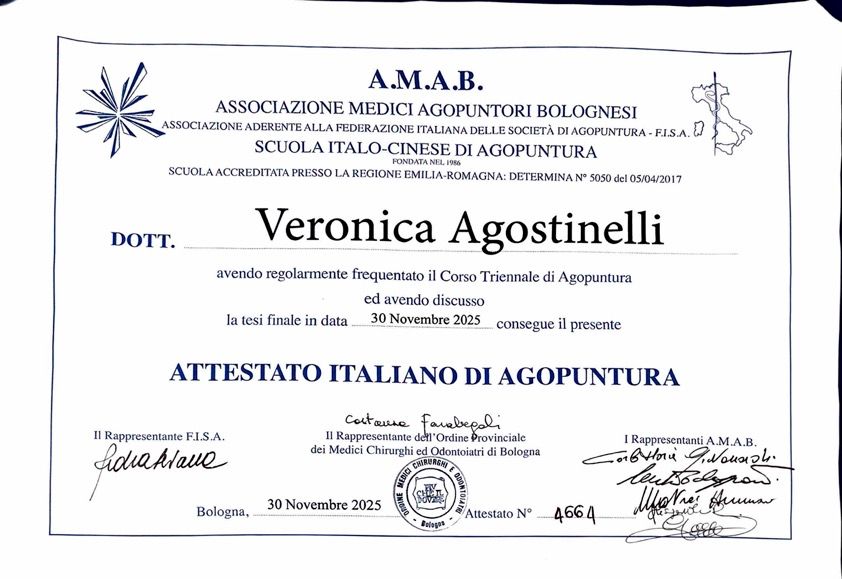 Con l'Agopuntura ho conosciuto una nuova medicina che ha come scopo non solo quello di trattare il problema circoscritto ma la persona nella sua totalità. Rappresenta un supporto per numerose condizioni come il dolore articolare da traumatismi, le lombalgie, le cervicalgie, le sciatalgie, le cefalee, le vampate di calore, le alterazioni del ciclo mestruale, l'ansia, l'insonnia e molto altro.