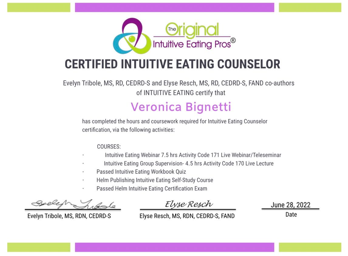 Veronica è una professionista capace di ascoltare davvero chi le sta di fronte. Mi sono rivolta a lei per fare pace con il cibo dopo anni di diete e nonostante la paura ad iniziare un percorso diverso, ho trovato il suo approccio di grande speranza.