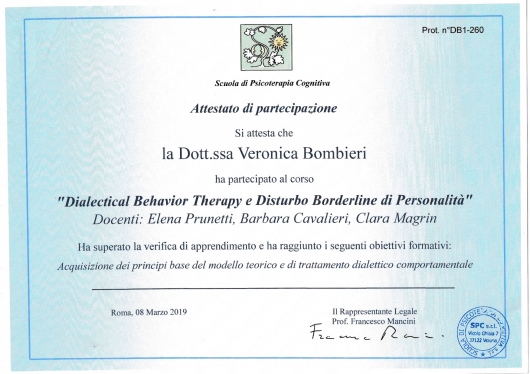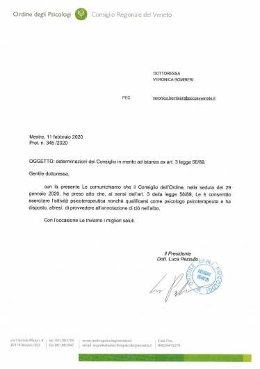 Ho apprezzato in particolare la grande empatia e l'approccio decisamente pratico durante la terapia. Ringrazio la dott. Bombieri anche per l'estrema flessibilità nella prenotazione degli appuntamenti• Veronica Bombieri • psicoterapia individuale •