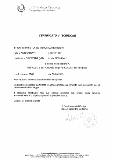 Mi sono rivolta alla dott. Bombieri in un periodo di transizione e grande confusione nella mia vita, e dopo un percorso di quasi due anni ho acquistato nuove prospettive, una maggiore conoscenza di me stessa e maggiore autostima.