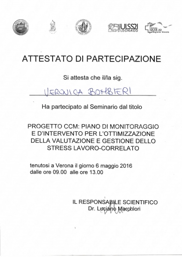 Così fu! Nel 2010 iniziai a lavorare all’interno dei servizi di psicologia del lavoro di grandi aziende del territorio di Verona e grazie a questo ho acquisito esperienza nell’ambito della formazione aziendale, del benessere organizzativo e della salute e sicurezza sul lavoro.