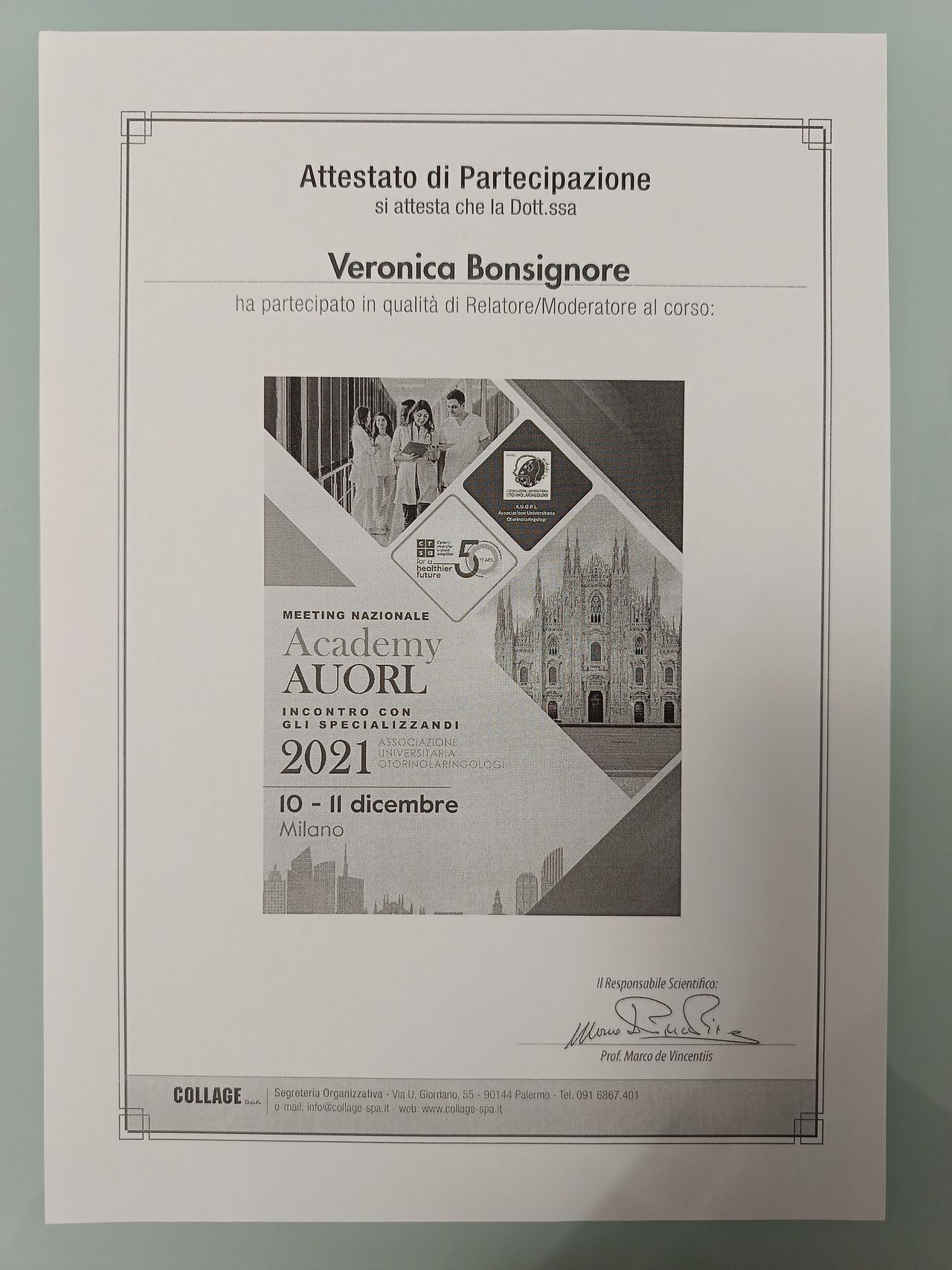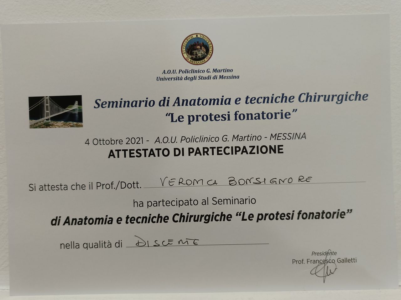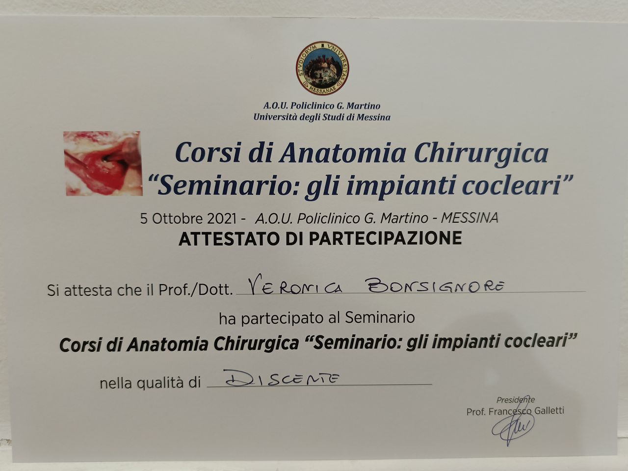 Medico chirurgo laureata presso l'Università degli Studi di Genova con una tesi di laurea svolta in ambito oncologico. Dopo aver lavorato per alcuni anni come medico generico prima a Milano e poi nell'emergenza sanitaria da Covid-19 a Genova, intraprendo il percorso di Specializzazione in Audiologia e Foniatria presso l'Università degli Studi di Catania, per approfondire quegli aspetti otorinolaringoiatrici che avevano suscitato in me maggiore interesse durante i primi anni di lavoro come medico. Mi laureo specialista, con lode, con una tesi svolta nell'ambito dell'Audiologia pediatrica, sulle novità preventive e terapeutiche nelle Ipoacusie neurosensoriali da infezione da Citomegalovirus. Mi occupo di Otolaringologia pediatrica, per adulti e anziani.