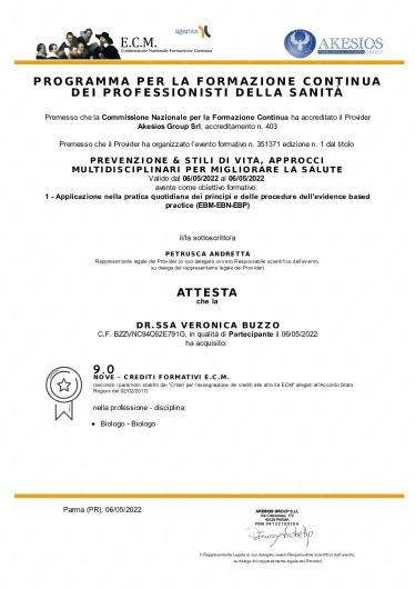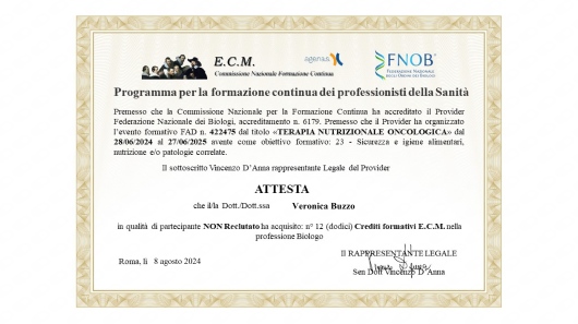 Consiglio vivamente sia per le sue competenze ma in particolare per le sue qualità umani, rarità di questi tempi!• Dott.ssa Veronica Buzzo • prima visita nutrizionale •