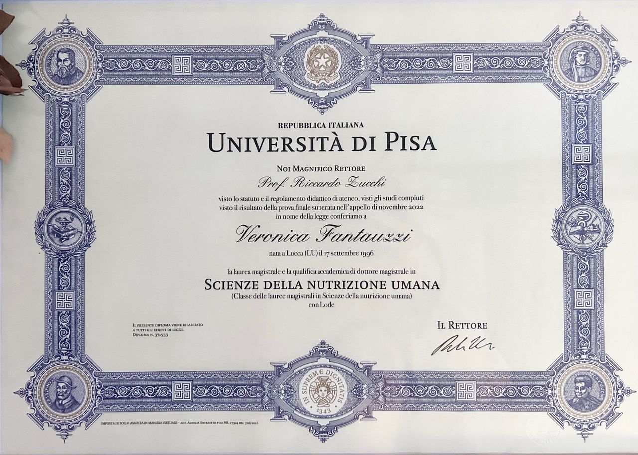 Sono Veronica, biologa nutrizionista, laureata con lode in Scienze della Nutrizione Umana presso l’Università di Pisa e regolarmente iscritta all’Albo dei Biologi della Toscana e dell’Umbria.