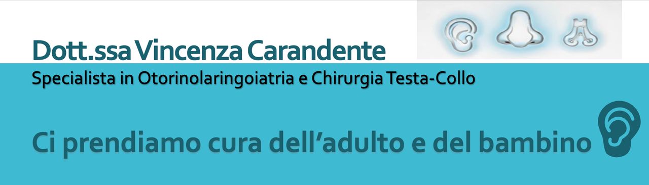Sono la dott.ssa Vincenza Carandente - Medico Chirurgo Specialista in Otorinolaringoiatria (ORL). Dopo la laurea in Medicina e Chirurgia con il massimo dei voti presso Università degli Studi di Napoli Federico II e Iscrizione all’Albo dei Medici Chirurghi di Napoli ho conseguito la specializzazione in Otorinolaringoiatria con Lode presso Università Vanvitelli di Napoli.
