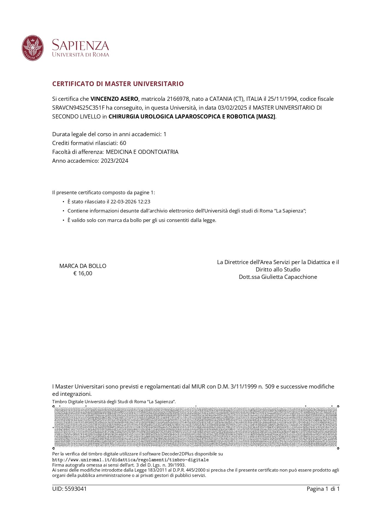 e in Chirurgia Laparoscopica e Robotica Urologica.