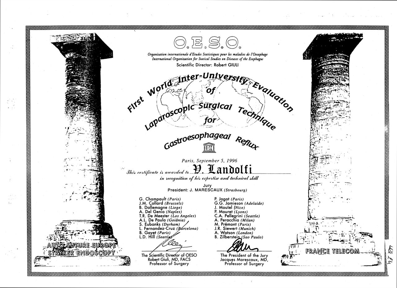 Luglio 1989 Specializzato in Chirurgia dell’Apparato Digerente ed Endoscopia Digestiva con voti 70/70 e lode presso la II Facoltà di Napoli