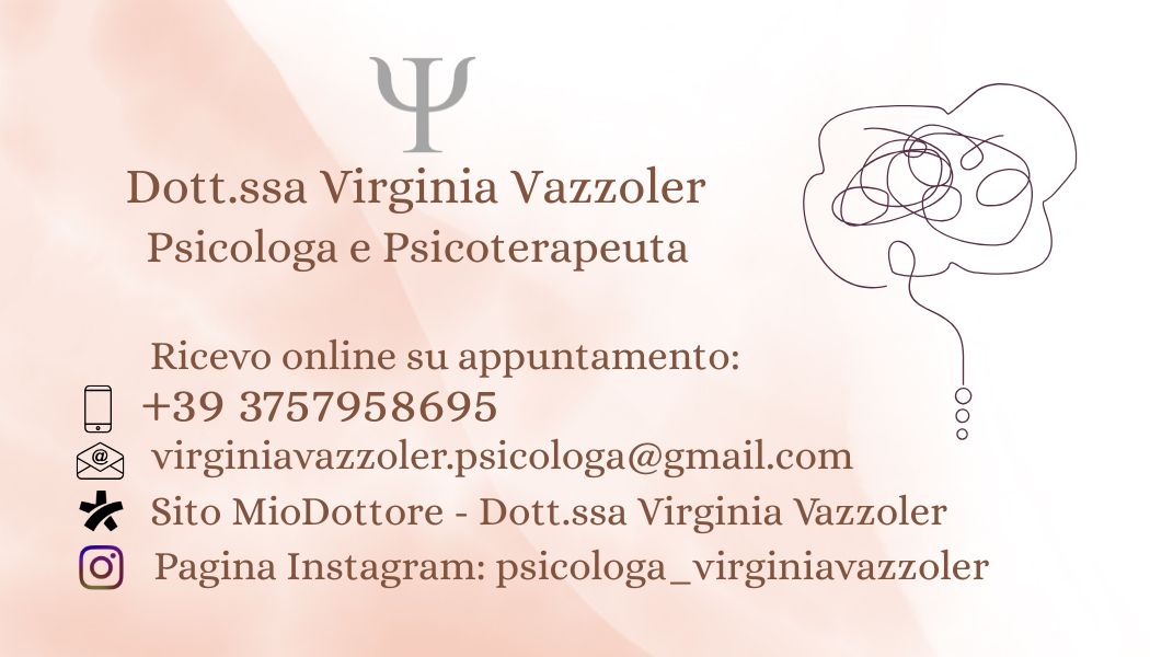 Nella mia pagina Instagram @psicologa_virginiavazzoler puoi trovare qualche spunto di riflessione in merito a tematiche che possiamo vedere insieme in un percorso di psicoterapia.