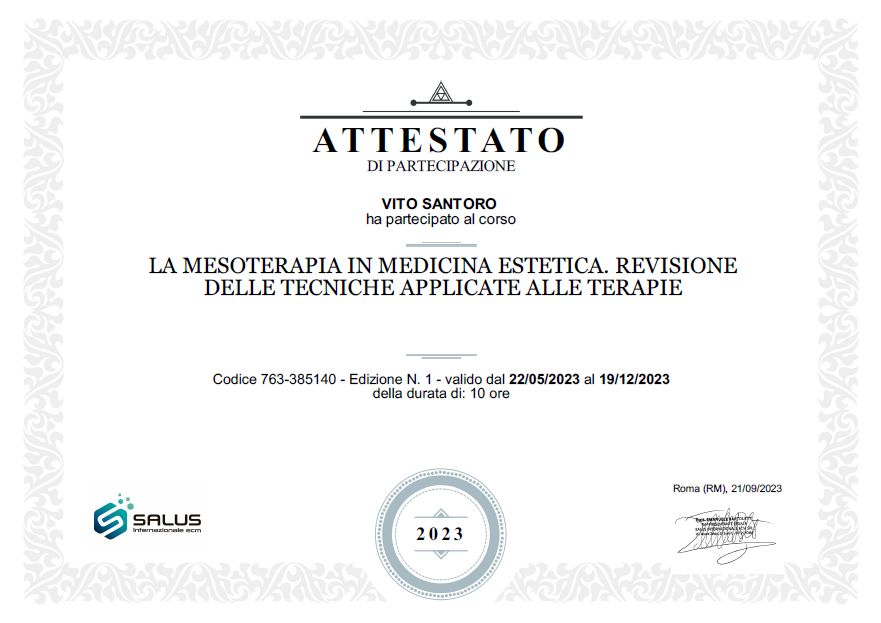 Il Dott. Santoro è una persona squisita, molto alla mano e garbata. Si distingue per serietà, competenza ed empatia. Mi piace molto il suo approccio alla medicina estetica.. valorizzare sì ma senza stravolgere!