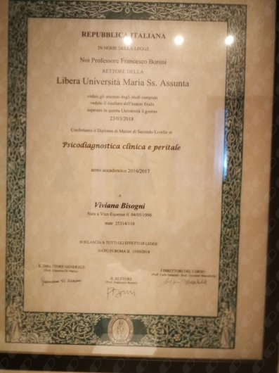 Mi chiamo Viviana Bisogni e sono una psicologa clinica, psicoterapeuta in analisi transazionale. Ho conseguito un Master di II livello in Psicodiagnostica clinica e peritale e un Master in Psicologia dello sport. La mia attività si basa sull'accoglienza e sull'ascolto empatico, con l'obiettivo di promuovere benessere, crescita personale e darsi il permesso di esprimere le proprie emozioni e pensieri all'interno di un contesto protetto. Gli interventi sono rivolti a singoli individui, quali minori o adulti, famiglie e gruppi. Mi occupo, inoltre, di Consulenza Tecnica di Parte per cause civili e penali.